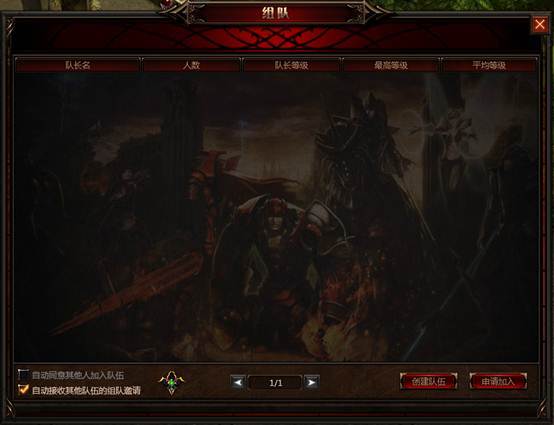 1. 点击主界面的“组队”按钮打开队伍界面,点击界面中的“创建队伍”