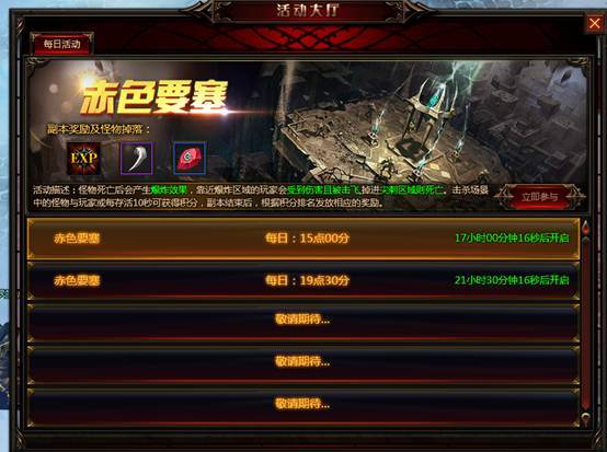 每日定时开启赤色要塞PVP副本。